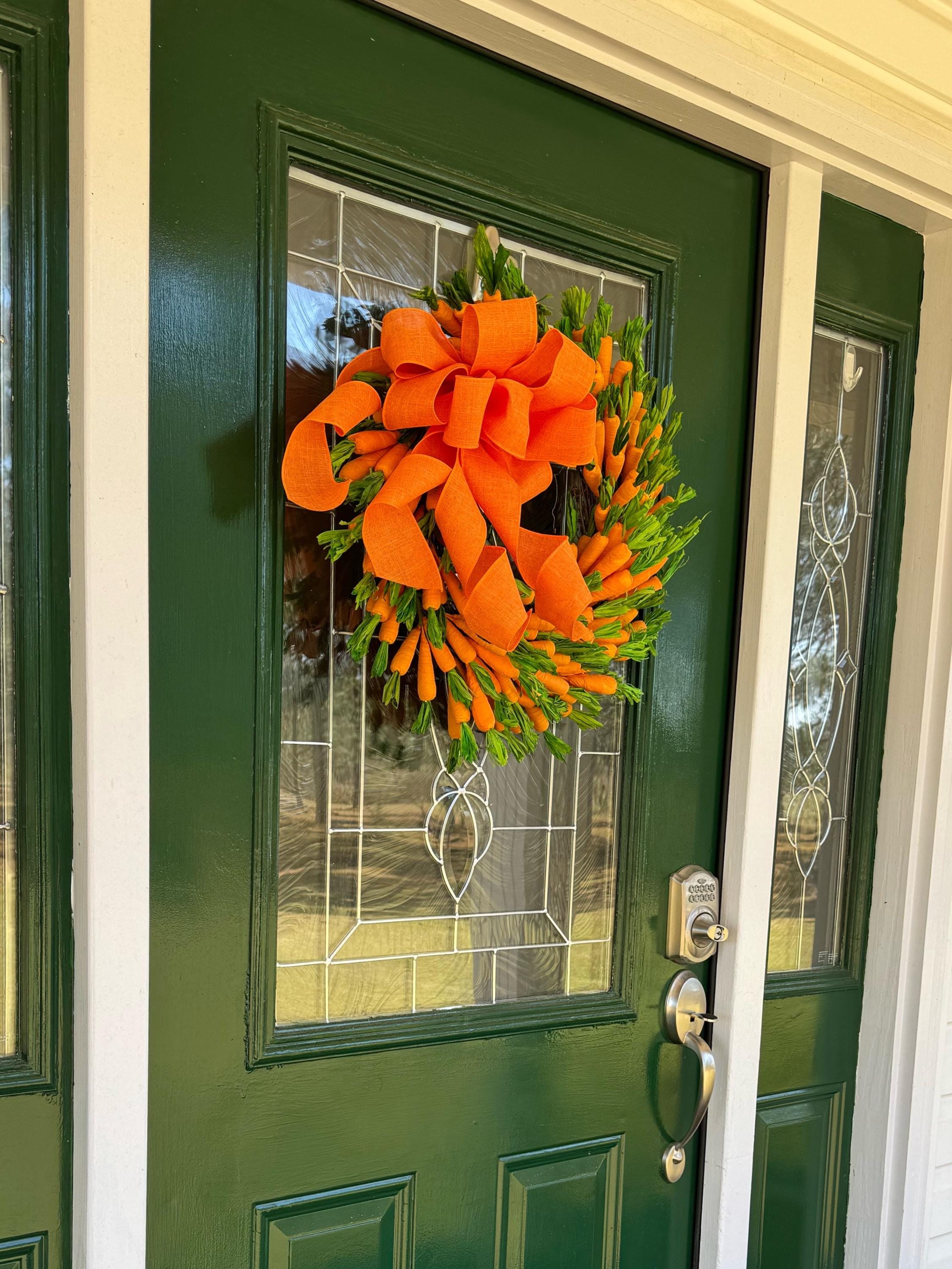 Why should eggs get all the attention during Easter? Doesn’t the Easter bunny eat carrots? This bold, beautiful, and fun wreath is the perfect Easter wreath for your colorful decor.