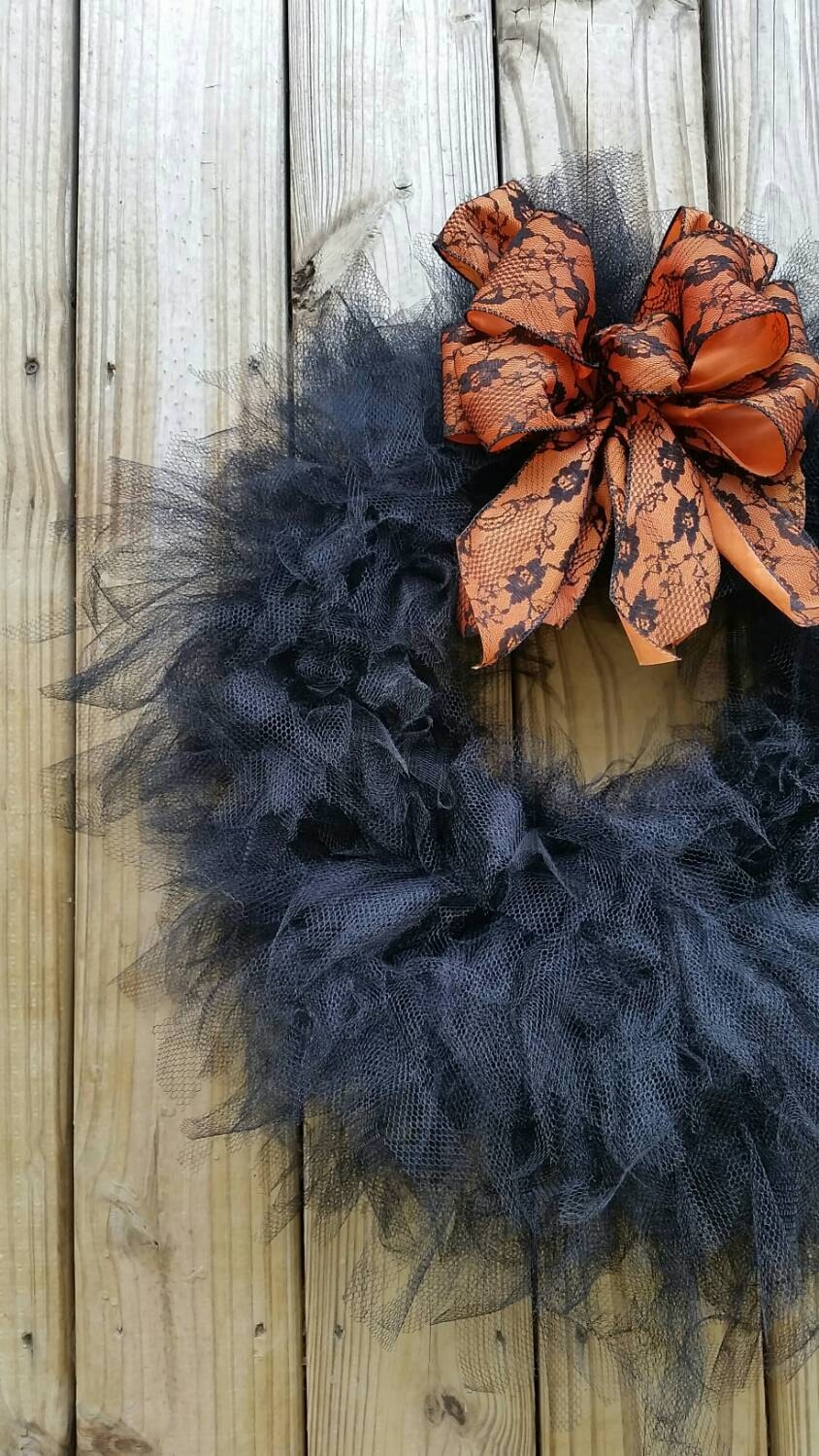 Halloween Wreath, Gossamer Black Tulle Wreath