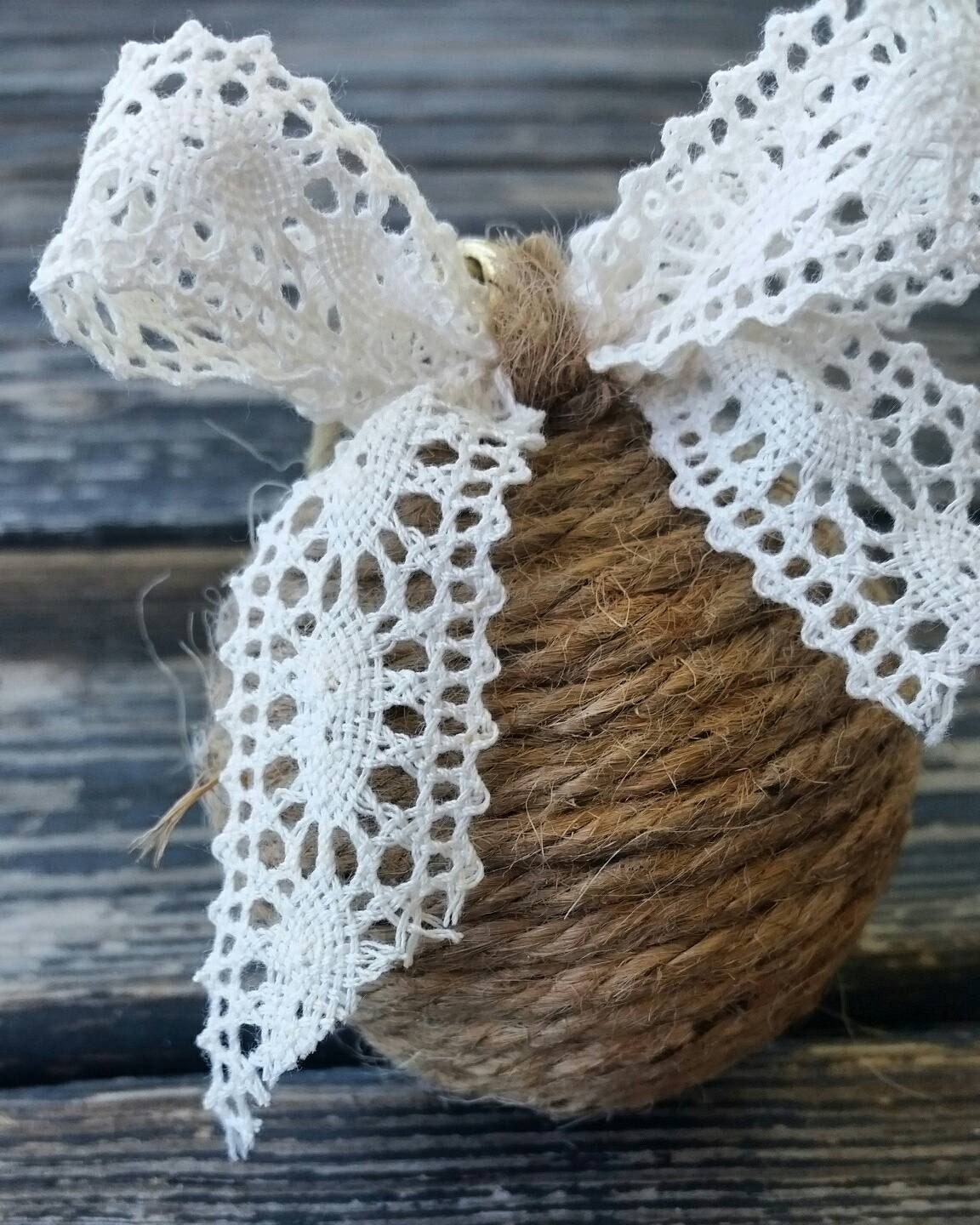 If you love rustic but elegant Christmas decor you will love these jute rope Christmas ornaments with lace bows.